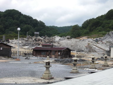 | 恐山の入山料(500円)で自由に入れる温泉。硫黄の匂いが充満だ。 | |