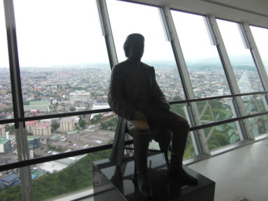 | 五稜郭タワーへ。 2006年4月1日にオープンした新タワーは高さ107m。 建てられた当時は旧タワー(60m)も並んで建っており、 新旧2つのタワーを見ることが出来たらしい。 |