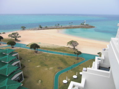 | 今日は、ゆっくりと9時過ぎに起床。 朝食券は昼食に変更可ということなので、ゆっくりと出発する事に。せっかくのリゾートホテルだしね。 部屋のバルコニーから海を望む。贅沢な光景が広がる。 |