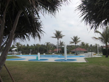 | 朝のホテル外観。夜とは、また違った印象。 プールもあるが、時期的に現在は閉鎖中。 |