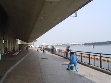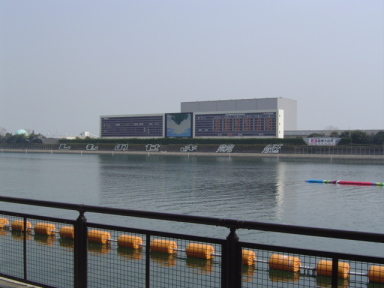 | とても水面の広い競艇場でした。 ちなみにすぐ海で遠く関門橋も見渡せます。 海水面。 |