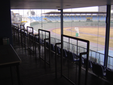 | 多目的な会場としての顔を持つメディアドーム。 ここの客席数は4階5階スタンドの合計で7,300席(最大15,000席)です。 競輪じゃ満席にするのは到底無理な話ですね。。。 |